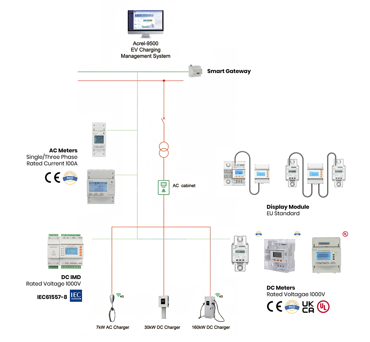 Acrel এর EV চার্জার মিটারিং সলিউশন EV চার্জিং স্টেশনগুলির জন্য একটি ব্যাপক এবং দক্ষ শক্তি পরিমাপ ব্যবস্থা প্রদান করে।