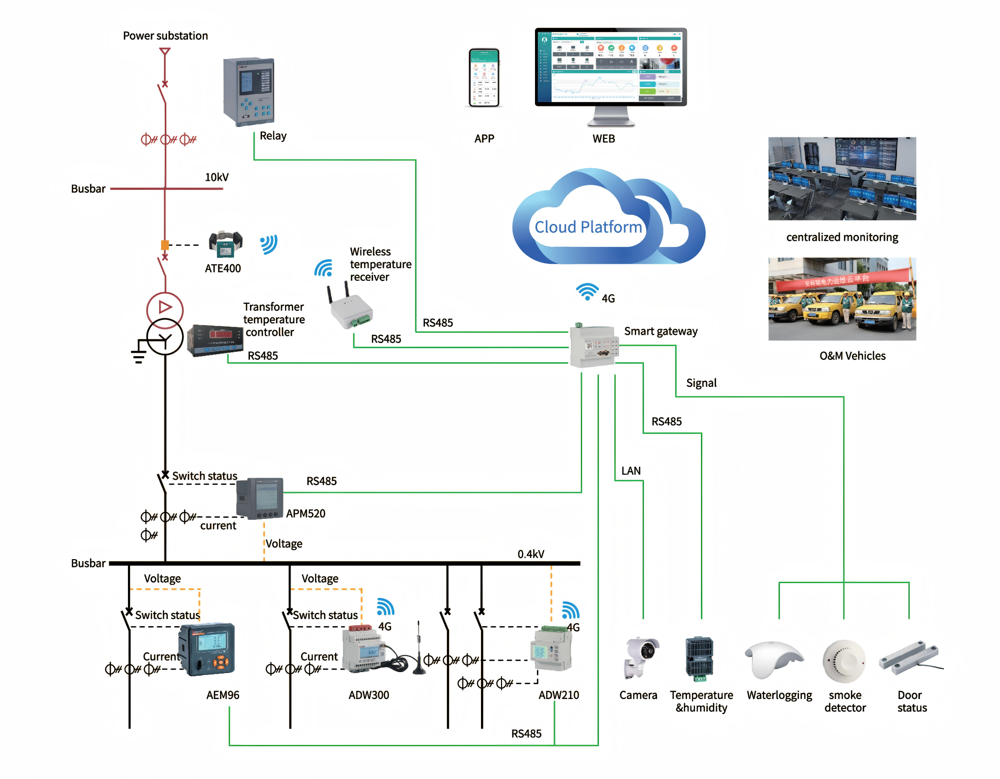 Acrel সাবস্টেশন এবং ডিস্ট্রিবিউশন রুম সলিউশন পাওয়ার সিস্টেমের জন্য একটি ব্যাপক, সাইবার-সুরক্ষিত ডিজিটাল অবকাঠামো প্রদান করে। সমাধানটিতে সুরক্ষা রিলে, পাওয়ার কোয়ালিটি বিশ্লেষক এবং আর্ক-ফ্ল্যাশ সুরক্ষা রিলেগুলি গুরুত্বপূর্ণ পাওয়ার সরঞ্জামগুলিকে সুরক্ষিত রাখতে বৈশিষ্ট্যযুক্ত। ওয়্যারলেস বাস-বার তাপমাত্রা সেন্সর এবং আংশিক স্রাব পণ্য সুইচগিয়ার স্বাস্থ্যের অবিচ্ছিন্ন পর্যবেক্ষণ সক্ষম করে।