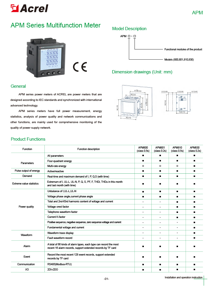 প্যানেল মাউন্ট করা শক্তি মিটার