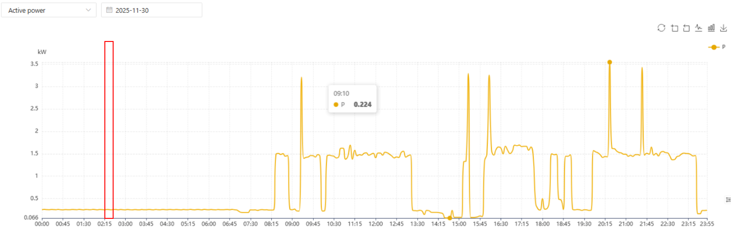 চাহিদা: সেই সময়ের মধ্যে গড় শক্তি, kW তে প্রকাশ করা হয়