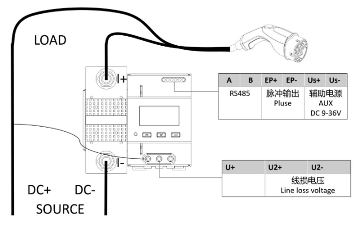Acrel DJSF1352-D-600 হল একটি DIN-রেল ডিসি এনার্জি মিটার যা 600A EV-চার্জিং, ফটোভোলটাইক, এবং ব্যাটারি-স্টোরেজ অ্যাপ্লিকেশনের জন্য তৈরি। এটি একই সাথে DC-1/B নির্ভুলতার সাথে DC ভোল্টেজ (0–1000 V), দ্বি-দিকীয় কারেন্ট (4-90 A প্রাথমিক, 600 A সর্বোচ্চ), তাত্ক্ষণিক শক্তি (kW), এবং ক্রমবর্ধমান সক্রিয় শক্তি (kWh) পরিমাপ করে, প্রদর্শন করে এবং রেকর্ড করে। একটি সেগমেন্ট LCD এবং ঐচ্ছিক DJSF1352-L রিমোট ডিসপ্লে মডিউল ভোল্টেজ, কারেন্ট, পাওয়ার, তারিখ/সময়, অভ্যন্তরীণ তাপমাত্রা এবং উভয় ফরোয়ার্ড এবং রিভার্স এনার্জি রেজিস্টারের রিয়েল-টাইম রিডিং প্রদান করে।