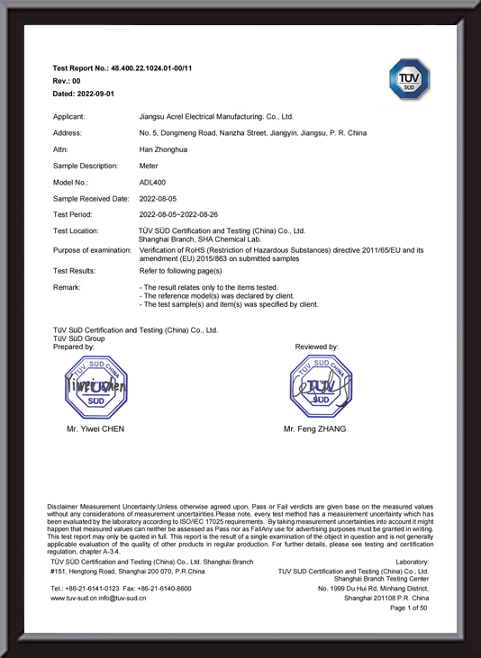কোম্পানির উৎপাদন সুবিধা, জিয়াংসু একরেল ইলেকট্রিক ম্যানুফ্যাকচারিং কোং লিমিটেড, উন্নত পরীক্ষার কেন্দ্র এবং সীসা-মুক্ত উৎপাদন প্রক্রিয়ার প্রতিশ্রুতি সহ কঠোর মানের মান এবং পরিবেশগত নির্দেশিকা মেনে চলে। Acrel এর 500 টিরও বেশি প্রকৌশলীর দল অত্যাধুনিক শক্তি দক্ষতা সিস্টেম এবং স্মার্ট শক্তি সমাধান সরবরাহ করে।