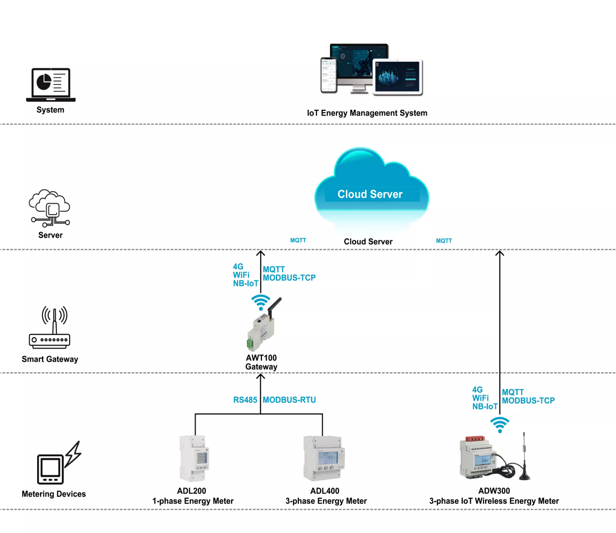 | ADW300 | ADW300 ওয়্যারলেস মিটার প্রধানত একটি কম-ভোল্টেজ নেটওয়ার্কের তিন-ফেজ সক্রিয় শক্তি পরিমাপ করতে ব্যবহৃত হয়। এতে রয়েছে RS485 কমিউনিকেশন এবং WiFi/4G/Ethernet/LoRa ওয়্যারলেস কমিউনিকেশন ফাংশন, যা ব্যবহারকারীদের বিদ্যুৎ খরচ নিরীক্ষণ, পড়তে এবং পরিচালনা করতে সুবিধাজনক। সাব-আইটেম পাওয়ার পরিমাপ, পরিসংখ্যান এবং বিভিন্ন অঞ্চল এবং বিভিন্ন লোডের বিশ্লেষণ অর্জনের জন্য এটি নমনীয়ভাবে বিতরণ বাক্সে ইনস্টল করা যেতে পারে। | |