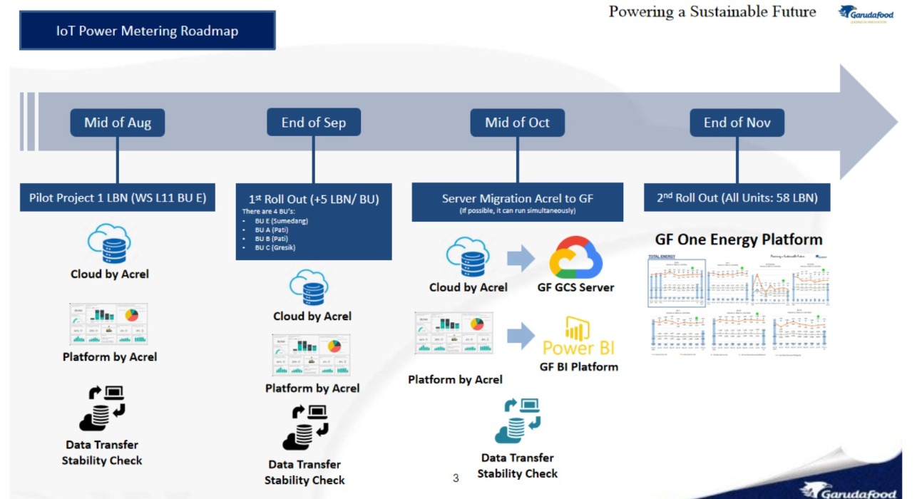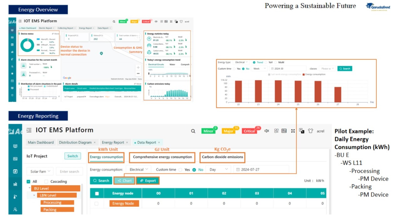GarudaFood, একটি নেতৃস্থানীয় ইন্দোনেশিয়ান খাদ্য এবং পানীয় প্রস্তুতকারক, দেশব্যাপী ভোক্তাদের জন্য উচ্চ মানের পণ্য উত্পাদন করে। ইন্দোনেশিয়া জুড়ে 10টি কারখানার সাথে, কোম্পানির খরচ ট্র্যাক করতে এবং অপারেশনাল খরচ অপ্টিমাইজ করার জন্য একটি কেন্দ্রীভূত শক্তি পর্যবেক্ষণ সমাধান প্রয়োজন।